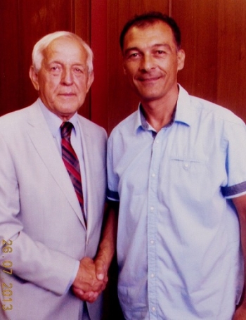 Поздрав двојице спортиста, власник ,,Академија за пословну економију" др Душан Петровић и сарадник у настави на ,,Академија за пословну економију" Драгомир Тановић