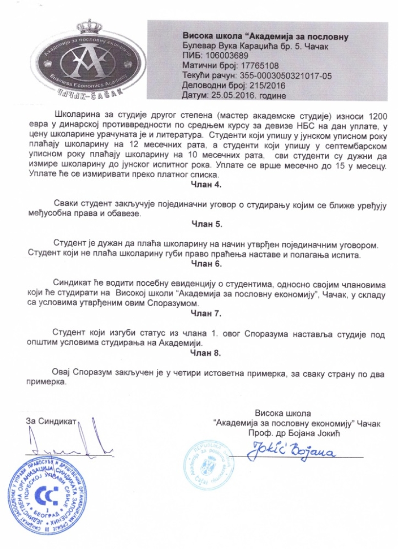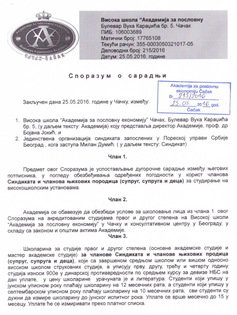 Уговор о најповољнијим условима студирања запослених радника Пореске управе Србије